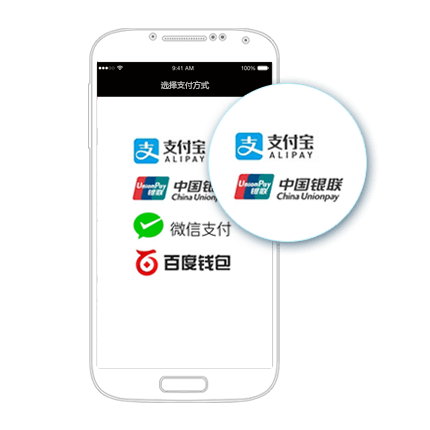 天使网络,为iOS/Android原生/H5 App提供支付解决方案:支持微信支付、支付宝支付、银联手机支付、百度钱包等。